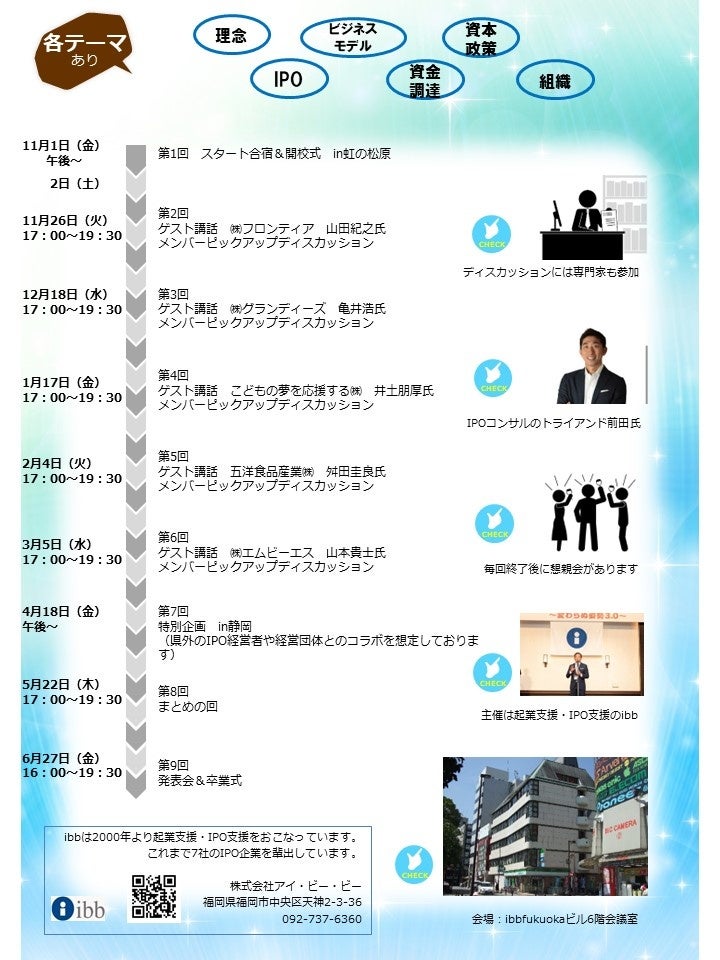 11月から翌年6月までとなり、福岡市の会場(ibbfukuokaビル)にてリアル開催となります。