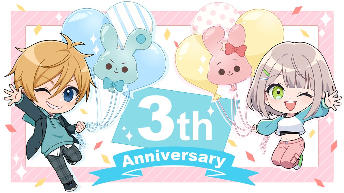 猫田ゆうと氏は、数々のアニメ公式ミニキャラデザイン、大型IP作品のグッズイラストなどを手がけるイラストレーターとして活動しており、今回のイラストは3周年の節目を彩る記念ビジュアルとなります。