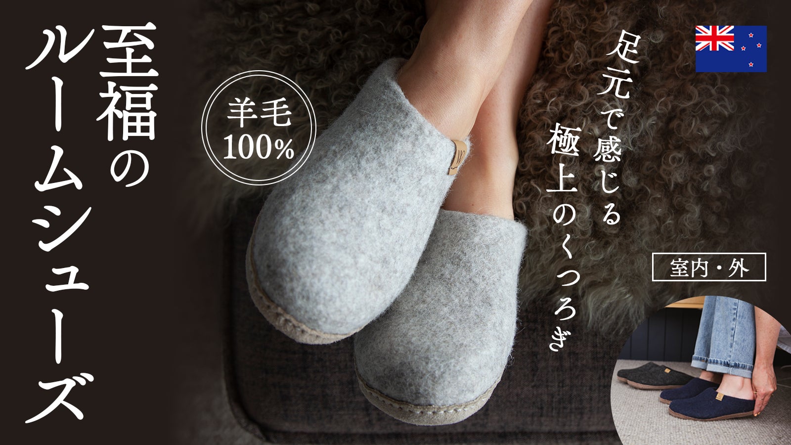 ・ニュージーランド産羊毛100%のフェルト生地で究極の履き心地を実現したルームシューズ