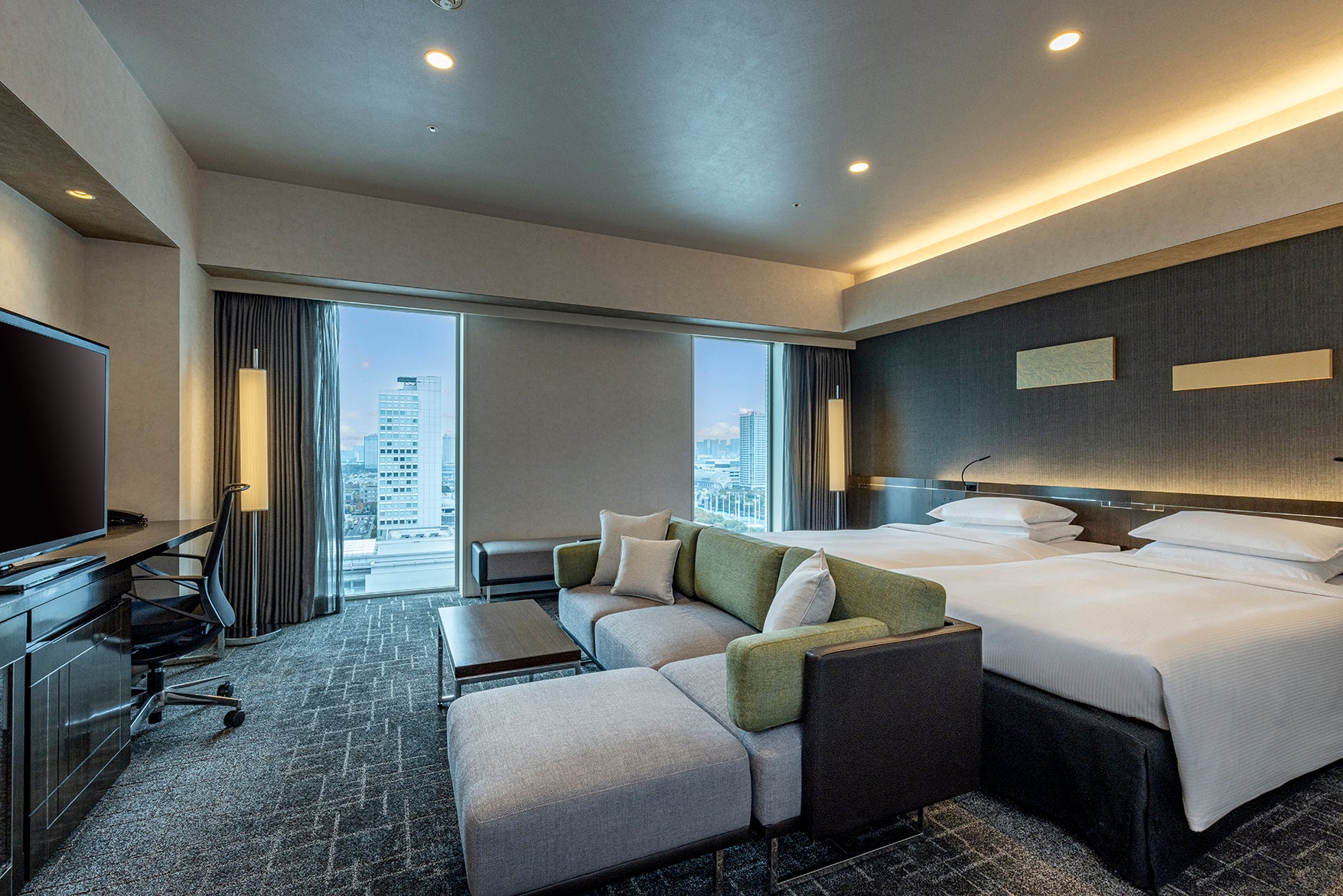 計7タイプ11種類の客室は、全室セパレートタイプのバスタブとレインシャワーを完備。ゲストルーム(22㎡)には、ビジネス利用や、一人旅だけでなく、ご家族やご友人、大切な方とおふたりでお過ごしいただけるクイーンベッド1台をご用意。また、ゲストルームの機能性をそのままにより広々とした空間でお客様のニーズに合ったベッドタイプが選べるデラックスルーム(26~30㎡)は、2名様から4名様までご利用可能な計3種類のベッドタイプをご用意しました。さらにワンランク上の優雅なホテルステイで特別なひとときを過ごしたいお客様には、プレミアムルーム(43㎡)がおすすめです。