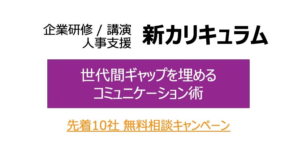 【先着10社限定】世代間ギャップを埋めるコミュニケーション術についての企業研修・講演の新カリキュラムをリリース、導入企業の募集を開始