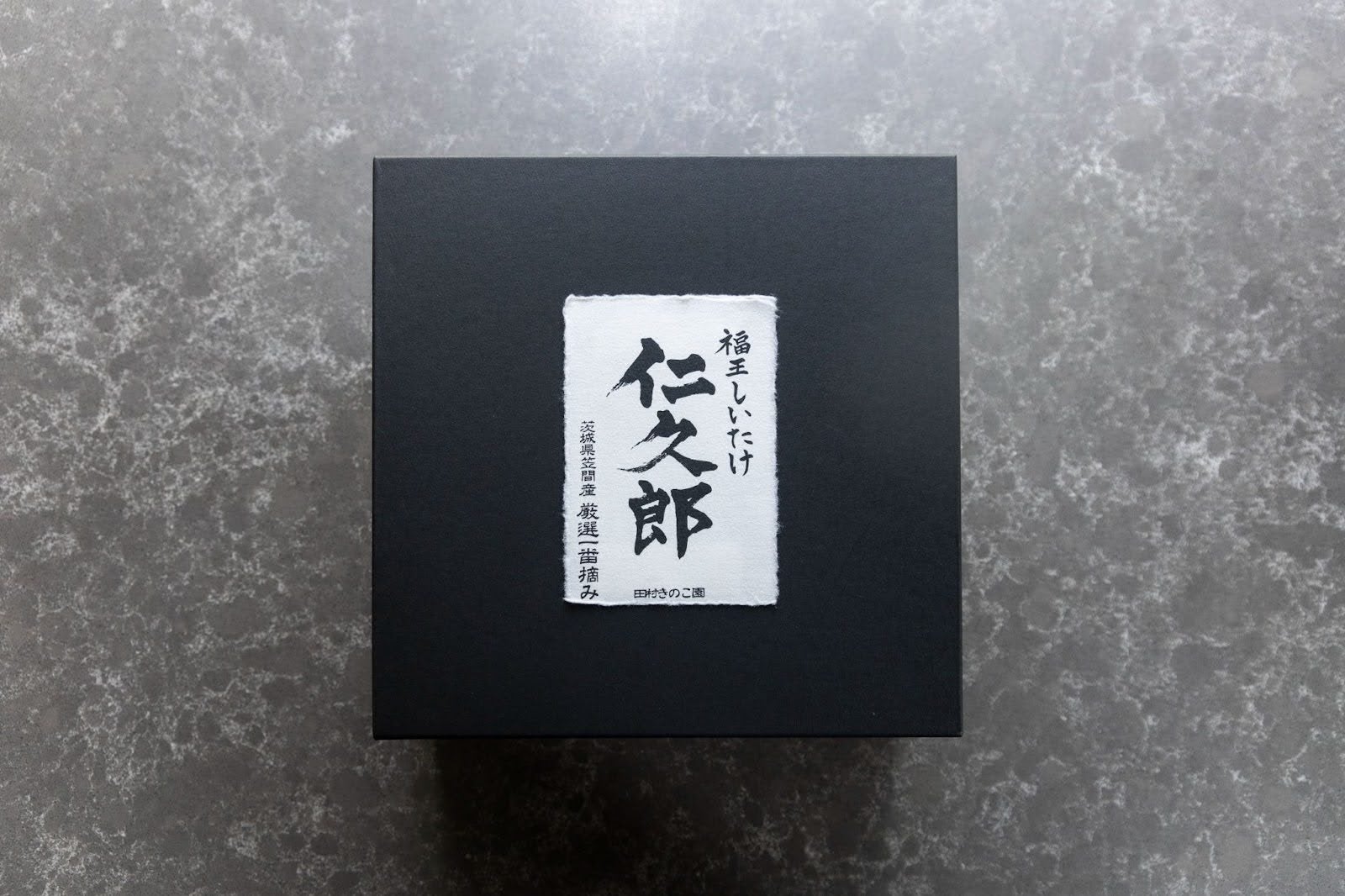 福王しいたけは、先代の田村仁久郎が65年以上の研究でたどり着いた栽培方法で作られる、肉厚で大きく味にこだわり抜いた椎茸です。香り高く、旨み溢れる福王しいたけの中でも、かさの大きさ、軸の太さ、形の美しさにおいて厳しい基準をクリアした椎茸のみをセレクトしたのが、今回販売を開始する福王しいたけ「仁久郎」です。「仁久郎」は、福王しいたけ史上最高峰の匠の技の結晶。季節の挨拶やお祝いごとなど大切な方への贈り物や、記念日の自分へのご褒美としておすすめしたい、こだわりの詰まった一箱です。