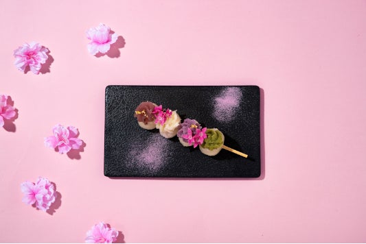 もっちりとした食感のお団子に桜パウダーと金箔をあしらった和風デザートです。