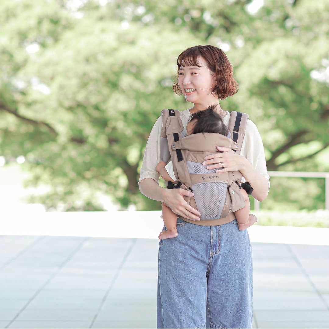 HUGLMベビーキャリアは日本人の体型や姿勢を研究し、親子の快適さを追求した日本製の抱っこ紐です。創業75年の子ども用品メーカーの私たちがよく耳にするのが「子育て中は余裕がなかった。だけど本当はもっとちゃんとしてあげたかった」という言葉でした。そんな親御さんの声に正面から向き合い、何度も試作とテストを繰り返しながら数年の月日をかけ、胸を張ってお届けできる抱っこ紐を作り上げました。