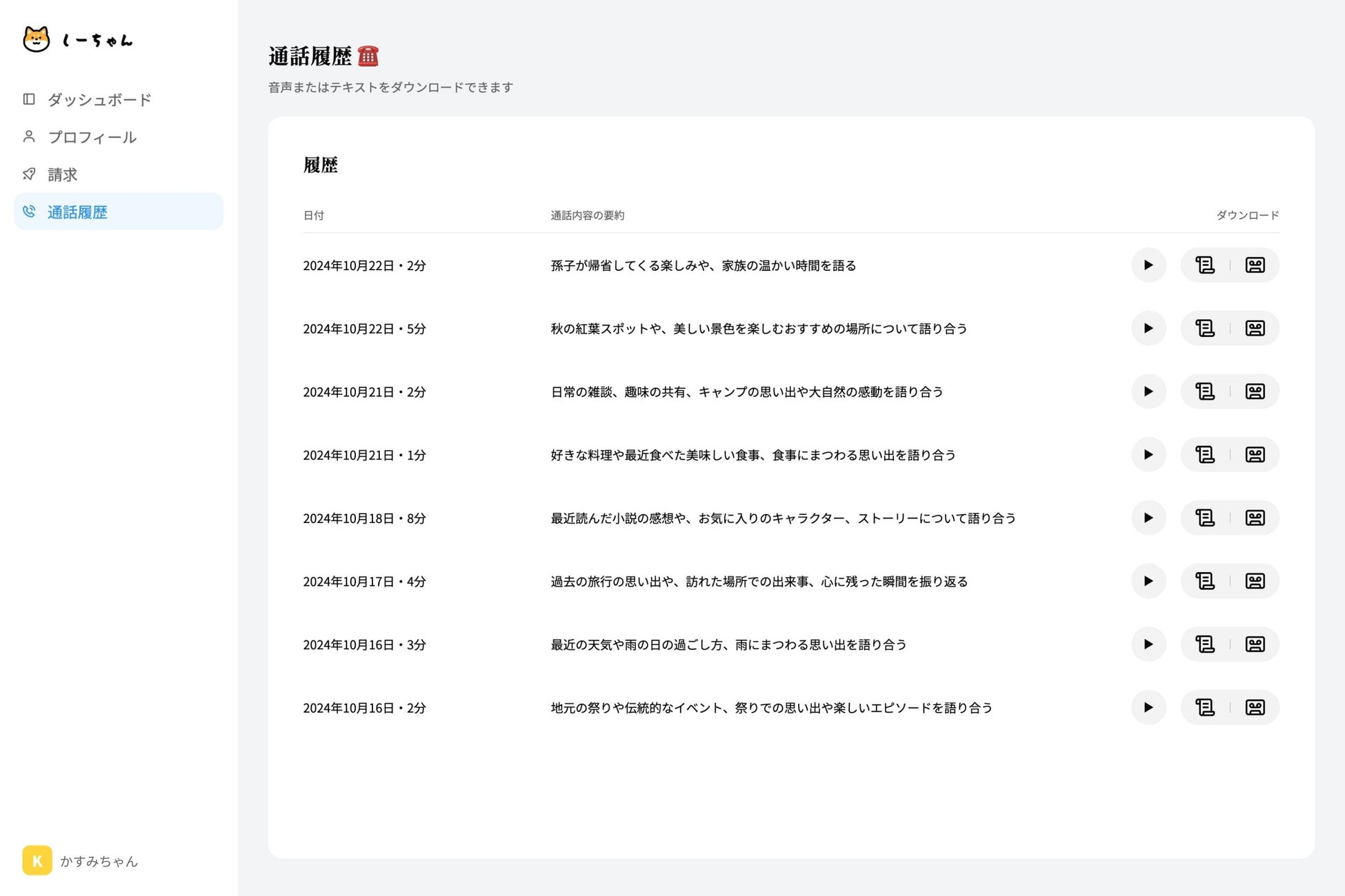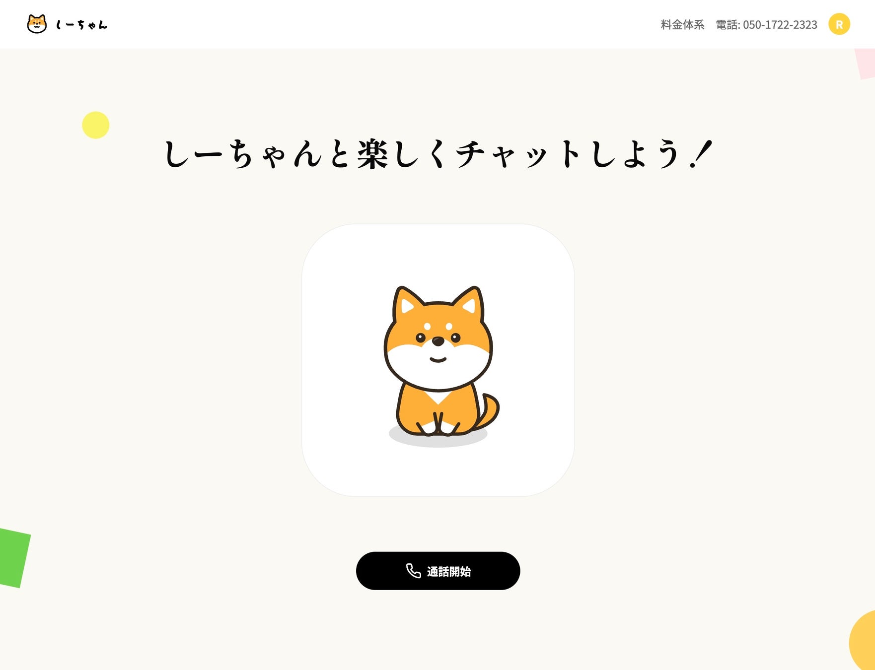 しーちゃんは、アプリやPCが不要、電話を掛けるだけで簡単に使えるお話し相手AIサービスです。
