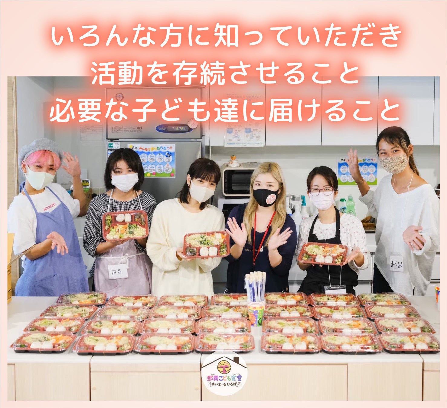 地域のみなさまのかけがえのない大切な居場所、子どもたちにとって気軽に来れる必要な場となってきたことをうれしく思う一方で、今の人員や予算では、お弁当の数に限りがあること、必要とする人に届けられていないことも課題となってきました。