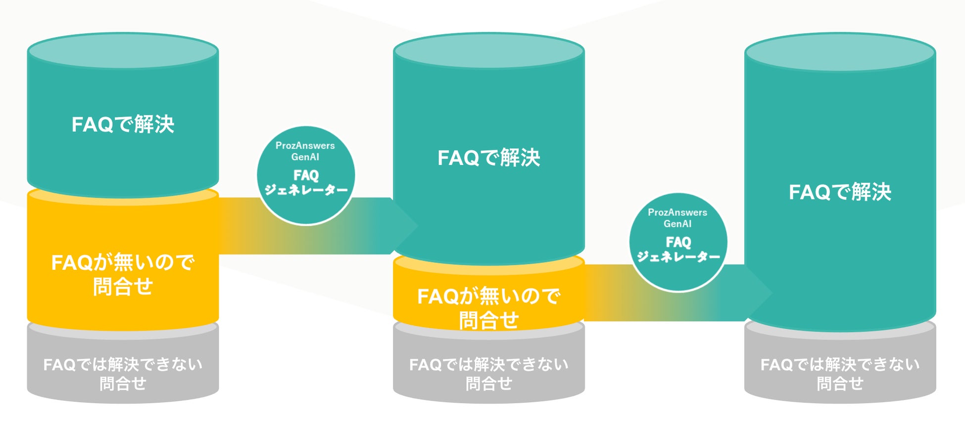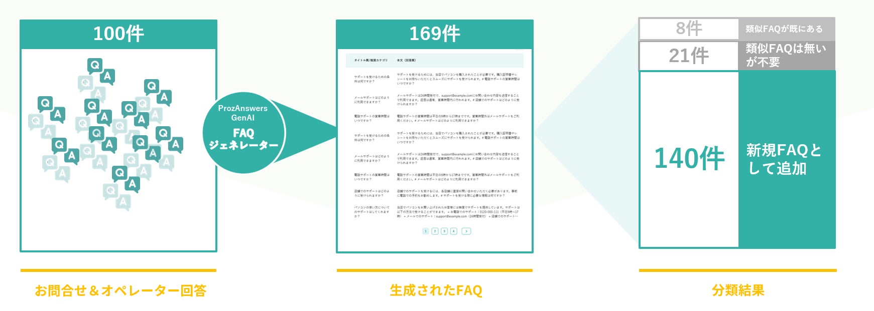 今回はその第一弾として、お問い合わせおよび回答を自動的に学習し、その学習内容から「不足しているFAQ」を生成AIが自動的に生成する【ProzAnswers GenAI FAQジェネレーター】をリリースいたします。