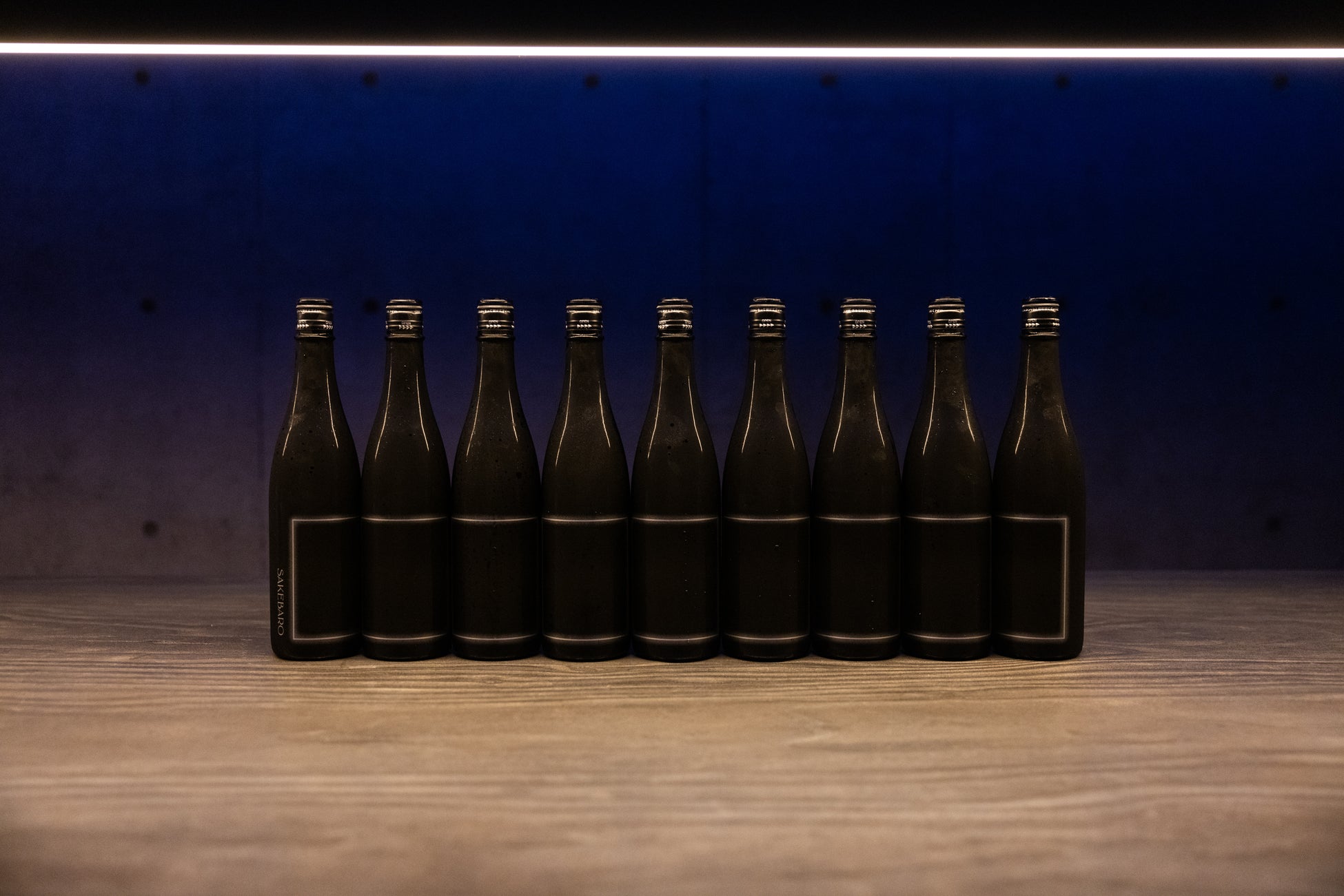 ・店舗空間とボトルデザイン:SAKEBAROの洗練された空間の中で月明かりの下で輝くシンプルで美しいボトル群