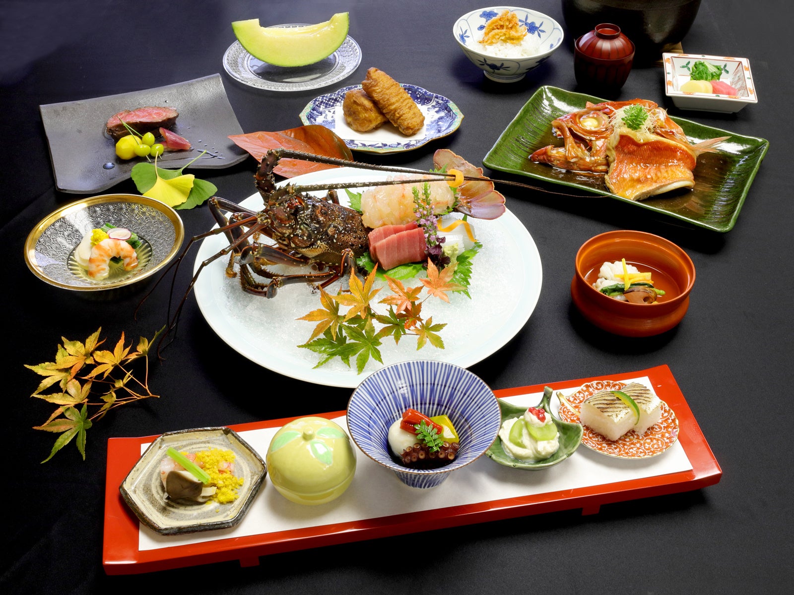 料亭旅館のコンセプトのもと、美味しさを純粋に追求するため、食材を吟味し全国の産地から取り寄せています。五法・五味・五色・五感の考え方を取り入れ、四季折々の旬を感じる日本料理をご用意いたします。こだわりの食材から丁寧にひいたお出汁をベースとした京風の雅な味わいの会席料理をご賞味ください。