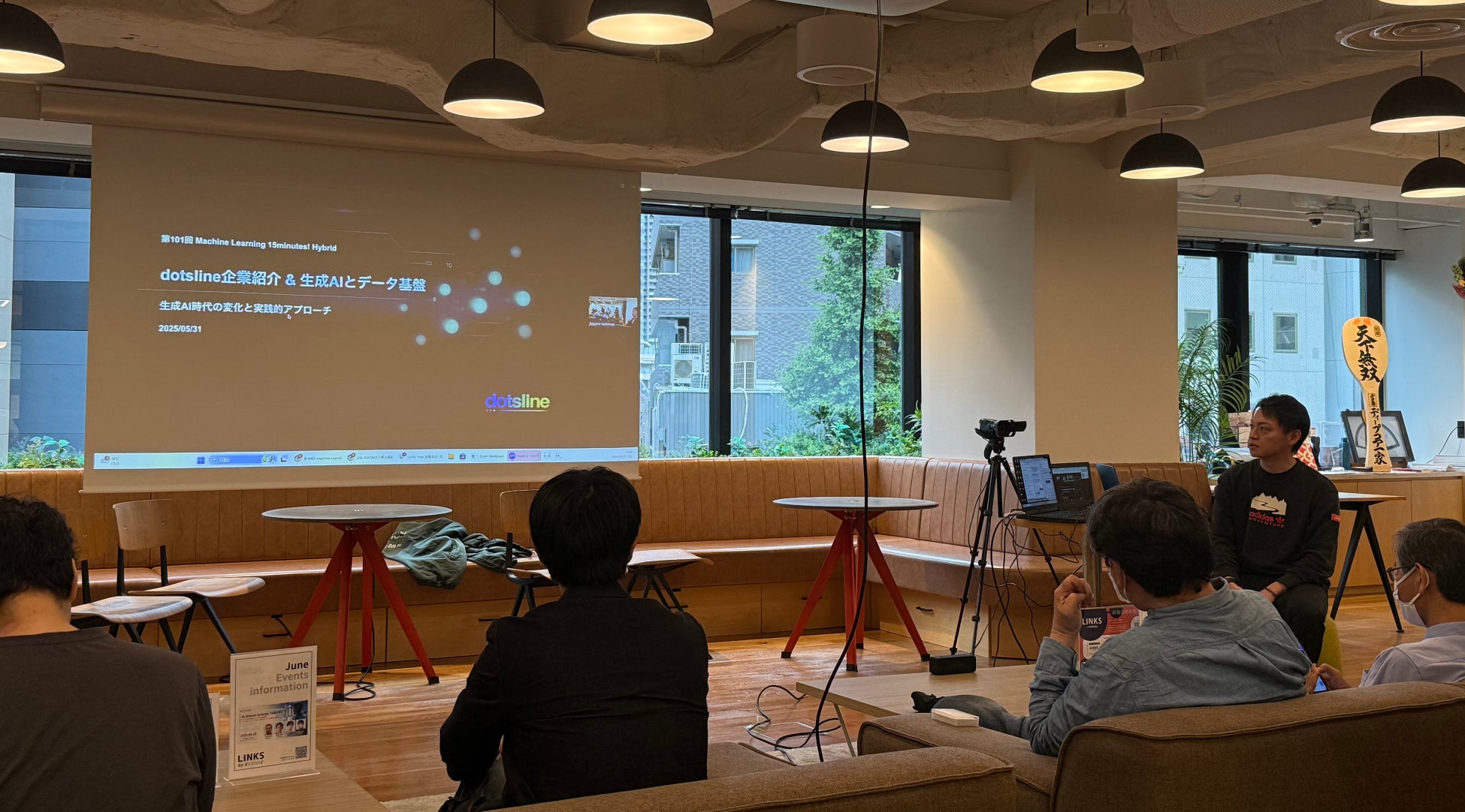 データ基盤構築・分析インフラを提供する 株式会社dotsline(https://www.dotsline.jp 本社:東京都港区、代表取締役:松本祐輝、以下 dotsline )は、2025年5月31日に開催された技術コミュニティイベント「第101回 Machine Learning 15minutes! Hybrid」にて、「生成AI時代のデータ基盤:変化と実践的アプローチ」と題したライトニングトーク(LT)に登壇しました。