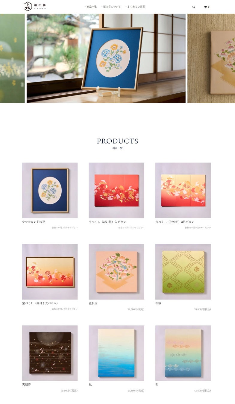 刺繍、染め、箔加工の技で、工芸美術きもの・染織工芸品を手がける 福田喜は、伝統工芸技術の新たな表現のひとつ、シルクアートパネル制作の 開始にともない、公式オンラインショップを開設致しました。