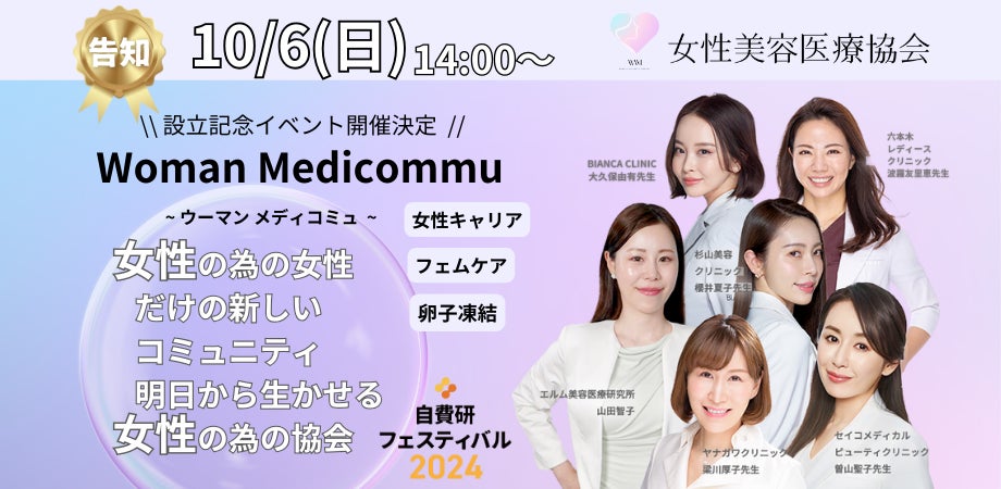 女性の医療従事者がキャリアを積む中で、ライフステージの変化や働き方の選択に悩むことは少なくありません。そのような女性たちを支えるために女性医療美容協会は誕生しました。協会設立お披露目イベント「女性美容医療協会 × 自費研フェスティバル2024」が、2024年10月6日(日)に開催されます。