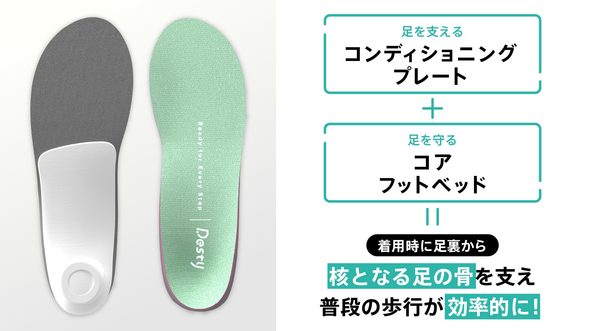脚・下半身に悩みを抱える女性は多い反面、その悩みのソリューションは乏しく、女性の足環境は決して良いものではありません。そのような状況の中、当社開発の機能性インソールを、美脚専門パーソナルジムDestyの顧客向けにカスタマイズし、ジムの利用時間以外の日常生活の中で「自然と足をケアするコンディショニングアイテム」として、提供を開始いたします。