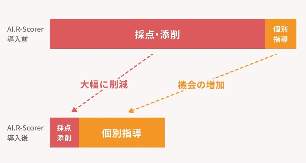 今飛躍的に発展しているAIの技術を活かせば、先生は先生にしかできないこと、つまり生徒一人ひとりの特性や背景を理解して指導をすること、その積み重ねによって生徒との信頼関係を築くことなどに集中できると考え、エアスコアラーの開発に至りました。エアスコアラーは、「ただ業務を効率化するシステム」ではありません。私たちは、AIを活用したサービス開発が学校現場の課題を解決し、先生と生徒の未来をよりよくすると信じています。