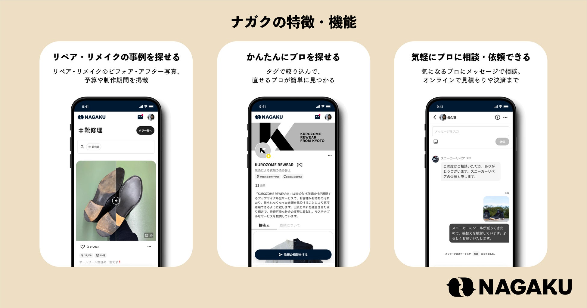 ナガク株式会社、プロや事例を探して依頼できるリペア・リメイクサービス『ナガク』をリリース
