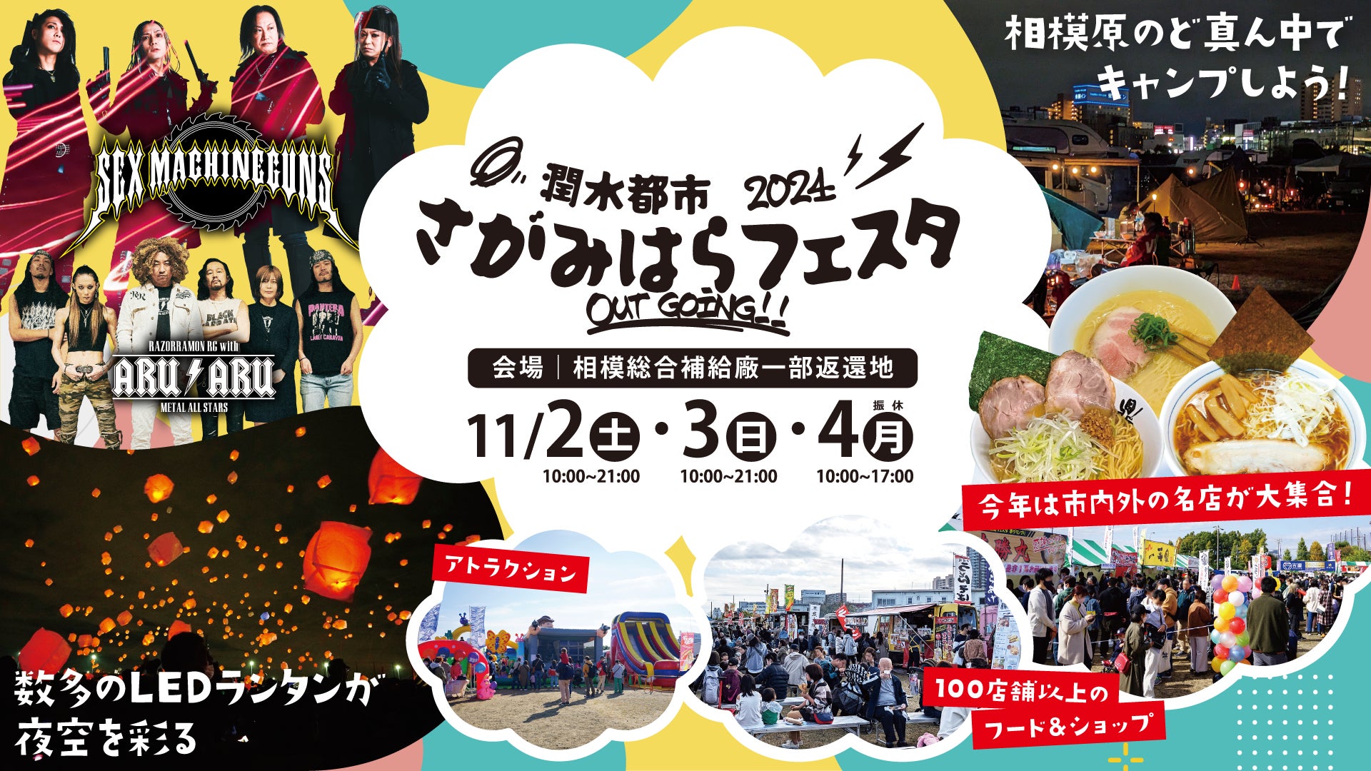 11月2日(土)、3日(日)、4日(月・振休)キャンプ・グルメにミュージック!大人も子どもも大満足な3日間「潤水都市さがみはらフェスタ2024 Out Going!!」開催決定