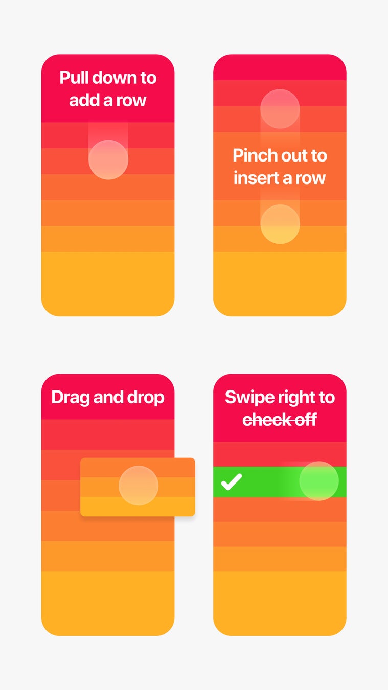 直感的で心地よいジェスチャー操作や、カラフルなヒートマップスタイルを取り入れることで、Clearは単純作業になりがちなTodoリスト作成をクリエイティブで楽しいものへと進化させたのです!