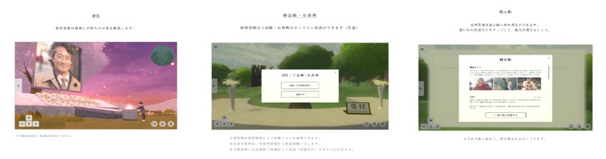 メタバース空間とWebページでセレモニー会場を生成。簡単に偲ぶ会を執り行うことができる葬儀社・企業総務部・芸能事務所など主催者向け機能も充実