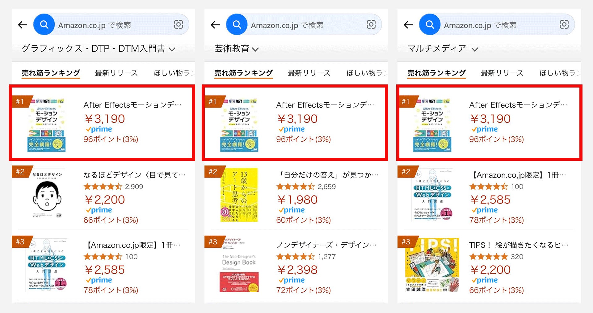 さらにAmazon売れ筋ランキングでは、「グラフィックス・DTP・DTM入門書」、「芸術教育」、「マルチメディア」の3カテゴリで1位を獲得しました。(2024年9月20日時点)