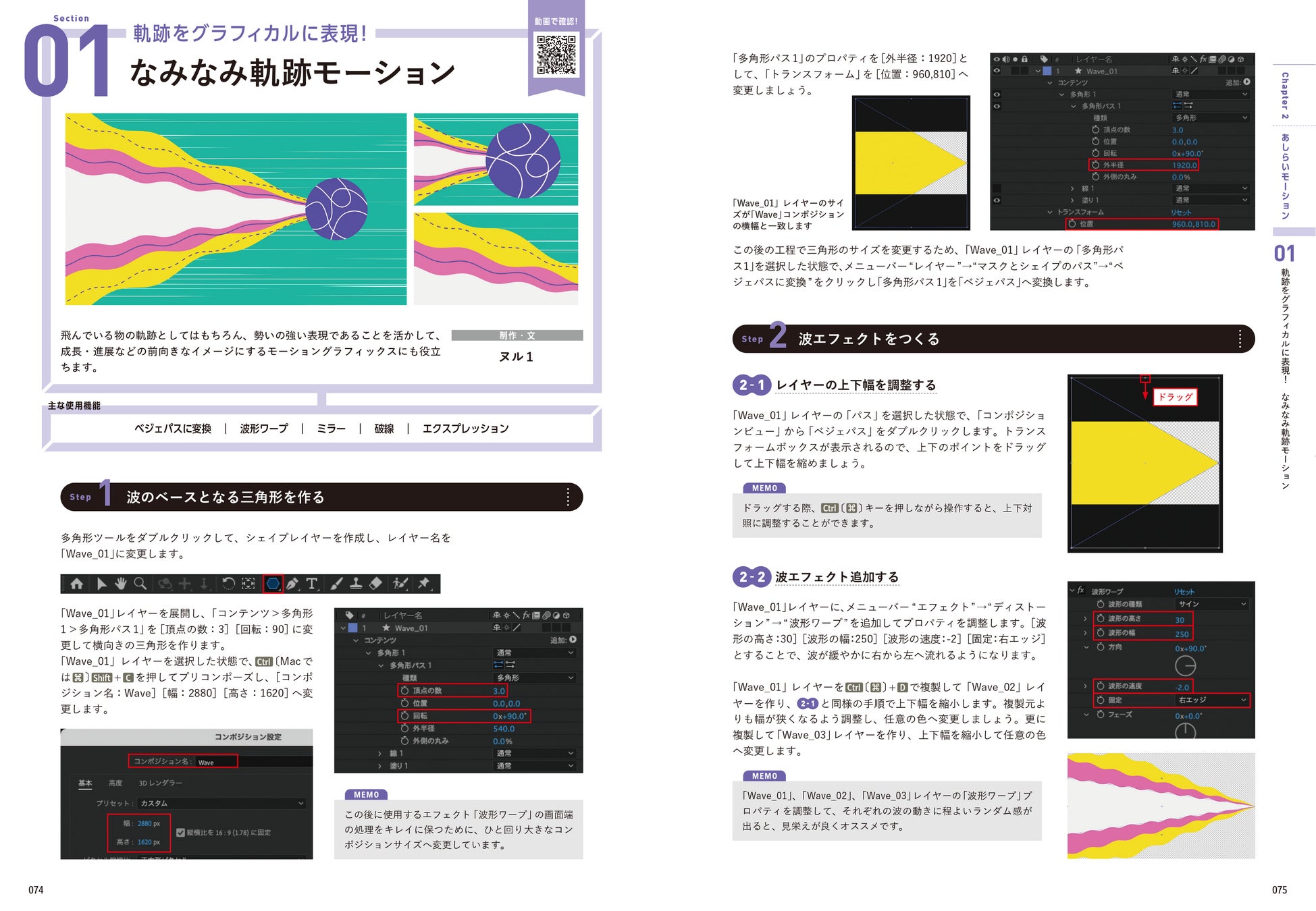 全作例のAfter Effectsプロジェクトファイルがダウンロードできるので、実際に触って学習していただけるようになっています。さらに各ファイルには本書で紹介しきれなかったテクニックも盛り込まれており、全作例のプレビュー動画も閲覧できるので、ぜひ紐解いてご自身のものにしてください。