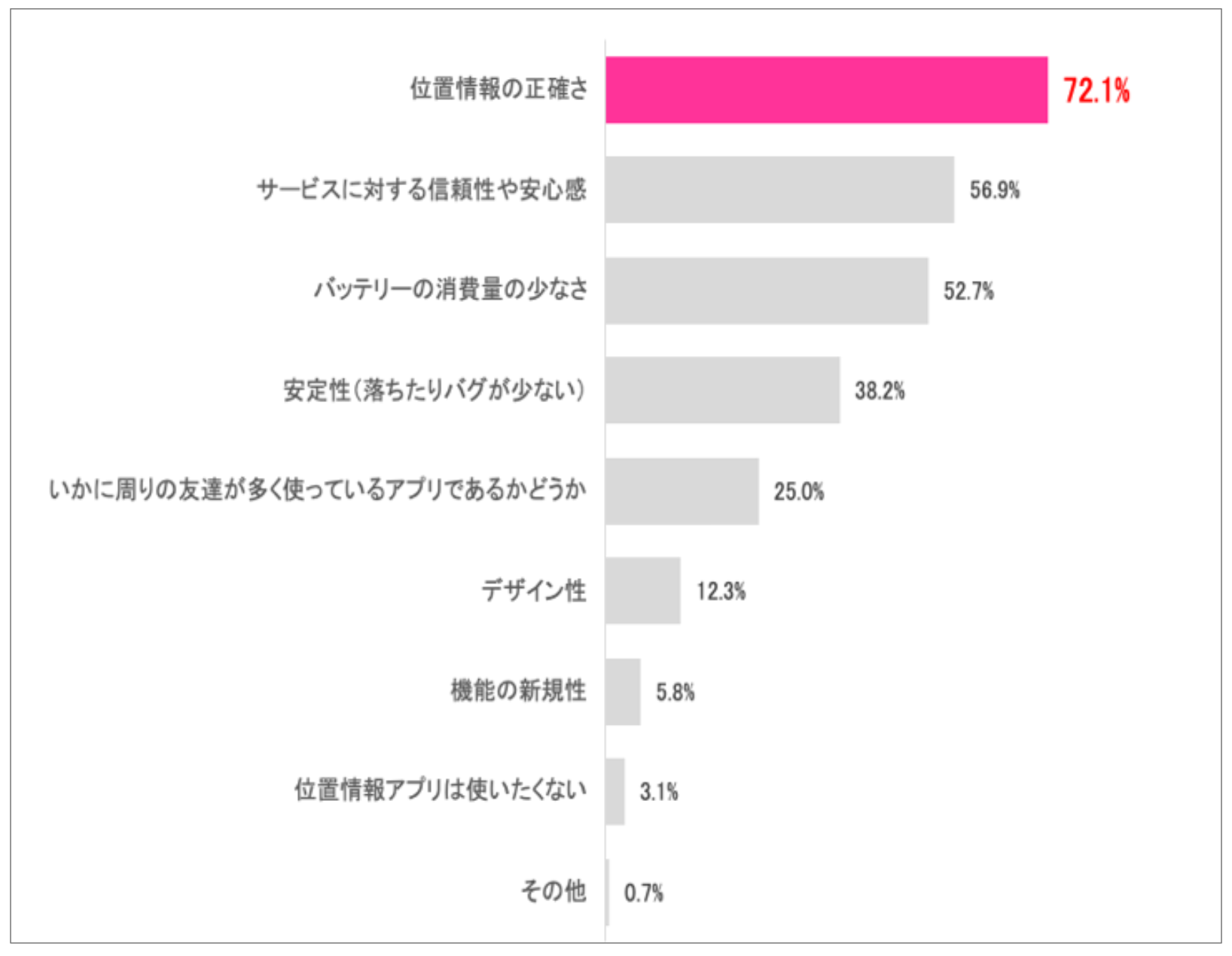 第1位は、「位置情報の正確さ」72.1%