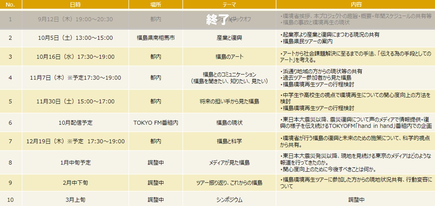 11月から12月に行う事前説明会にご参加下さった皆様のご意見を踏まえた行程で、福島を知っていただくツアーです。ツアー名やツアー内容は12月下旬ごろ公開予定です。 |