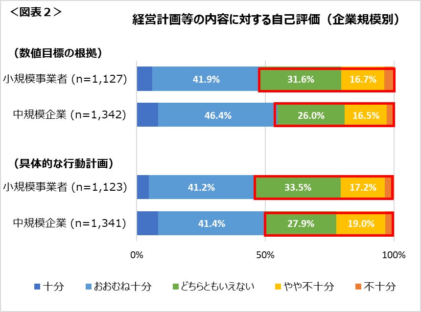 また、経営計画等を策定していても、その内容に自信を持つことができない企業が約5割あります。<図表2>
