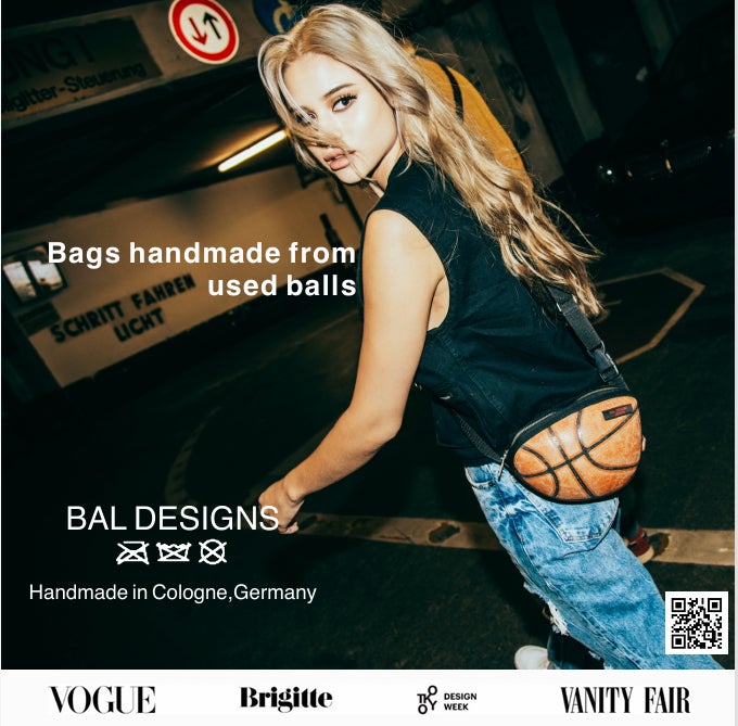 ドイツ・ケルンのデザイナーリタバルタがデザインしたバッグをドイツでハンドメイド!持続可能な社会を実現するために使われなくなった様々なボールが生まれ変わります。