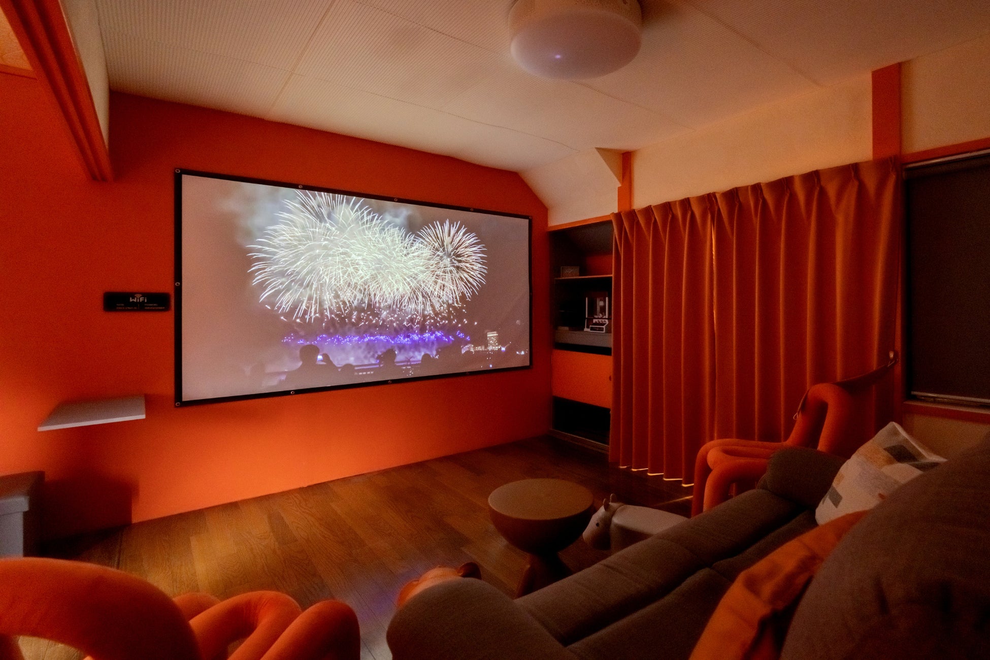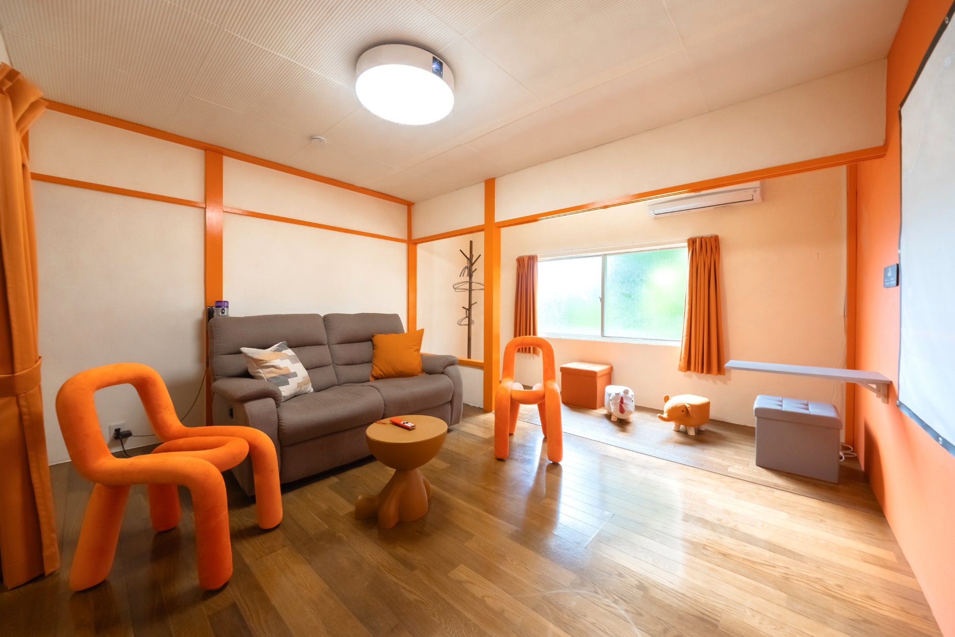 2階建ての建物には、3つのベッドルームを含む7つの個性的な部屋を用意しています。約20平方メートルあるシアタールームには大画面のプロジェクターを設置。ゆっくりと映画を見たり、カラオケで盛り上がったり、セミナーやワークショップのプレゼンテーションで使ったりと、思い思いの使い方が可能です。