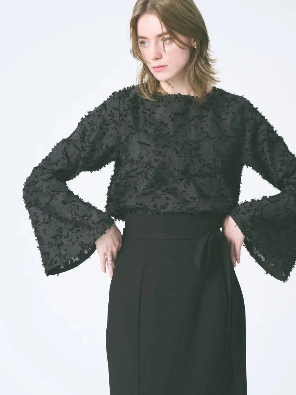 手元を美しく見せてくれるベルスリーブの前後2wayブラウス。