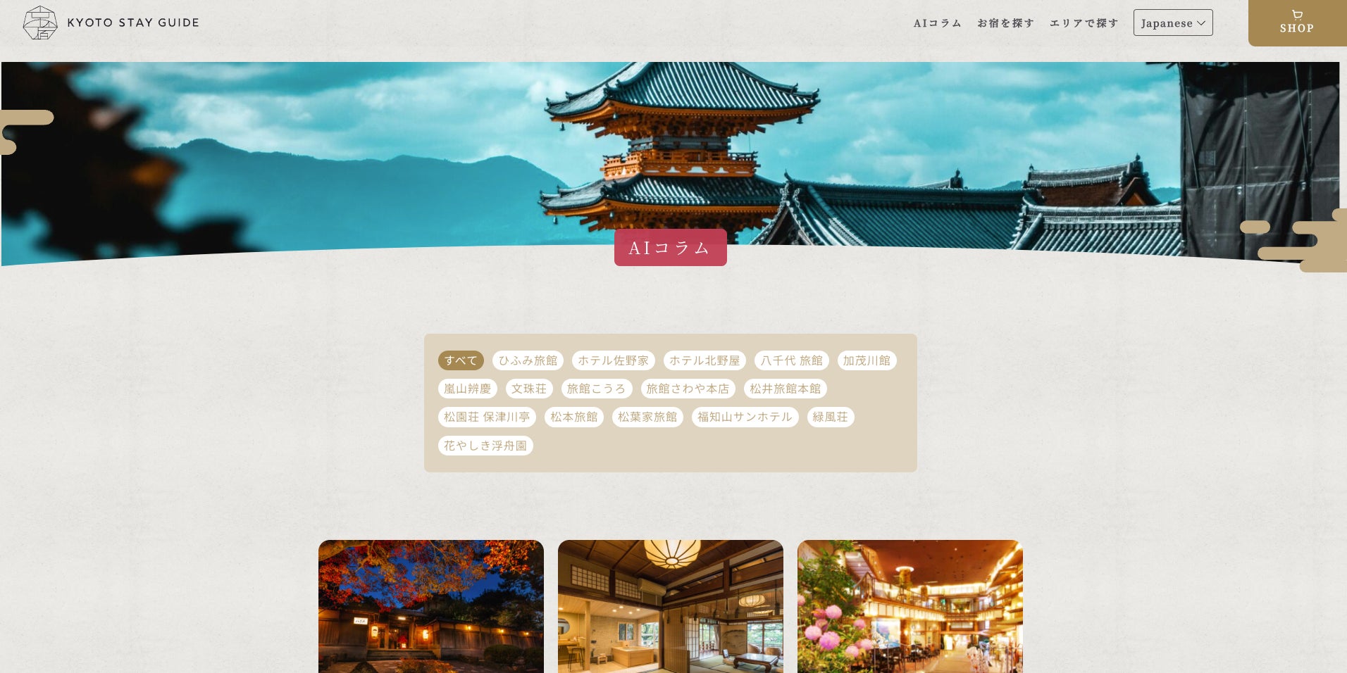 「京の宿 Kyoto Stay Guide」AI生成記事システムを活用した新時代のポータルECサイトが誕生!