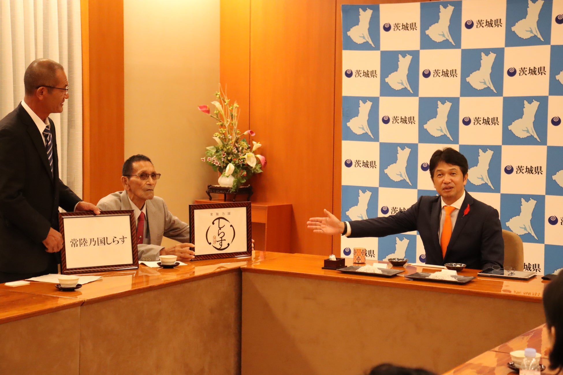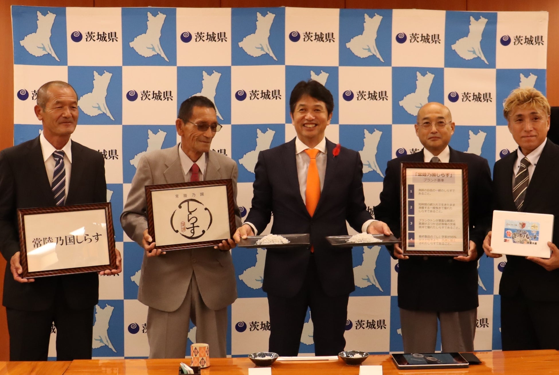 表敬訪問では、協議会メンバーから新ブランドの名称「常陸乃国しらす」とロゴマークがお披露目され、新ブランドとしての第一歩を踏み出しました。