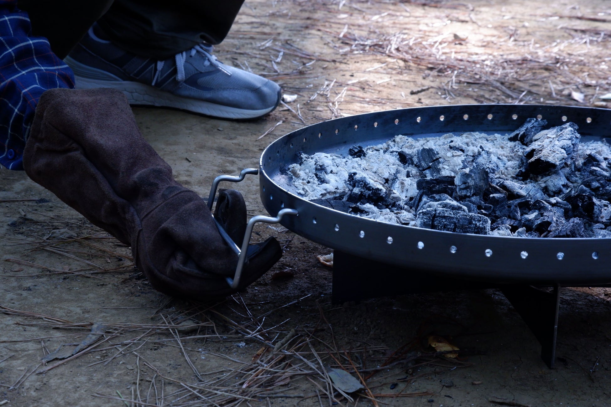 無駄な装飾を排した黒皮鉄製のデザインは、シンプルながら力強い存在感を放ちます。使い込むほどに味わいが増し、どんなアウトドアシーンでも焚き火の魅力を引き立て、特別な雰囲気を演出してくれます。