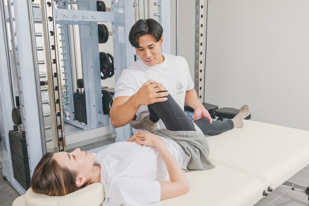 Life Withはトレーニングとストレッチを組み合わせたハイブリッド型のパーソナルジムです。個室マンツーマンレッスンで、経験豊富なトレーナーがお客様一人ひとりに合わせた理想のボディメイクをサポートします。