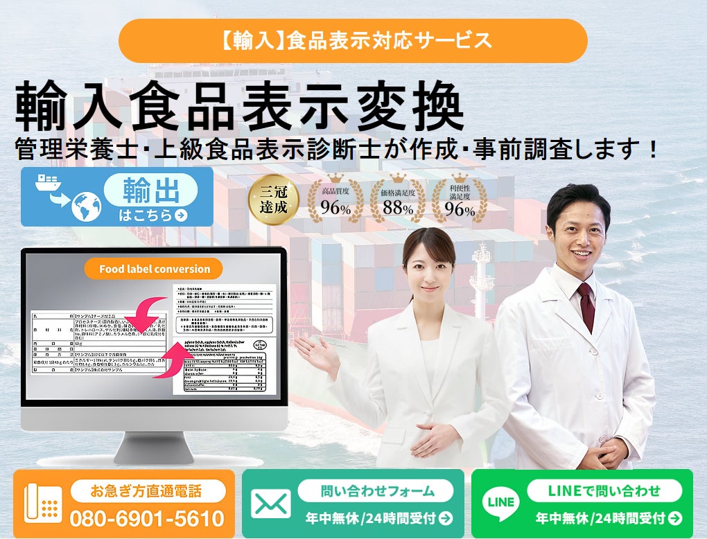 【輸入食品・輸出食品】⾷品原材料・加⼯⾷品事前調査/⾷品ラベル変換作成
