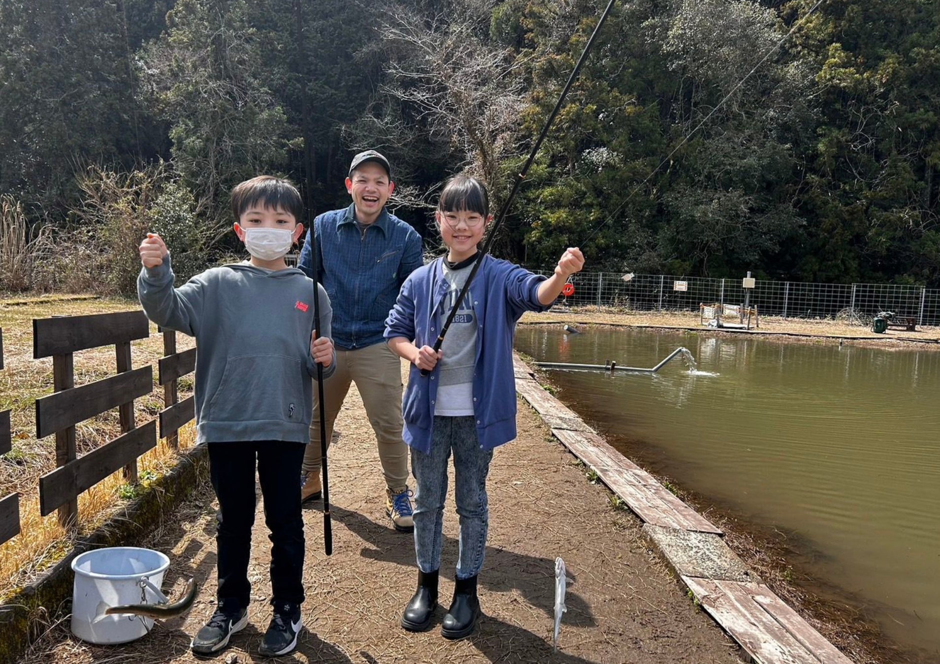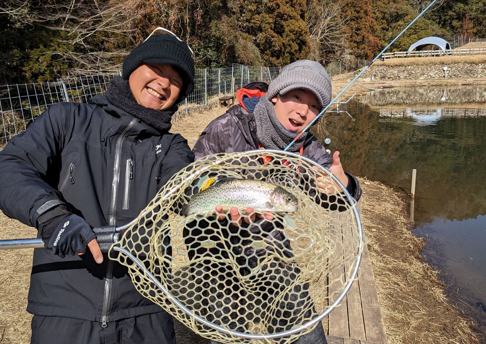 施設内に併設されたおよそ900㎡を誇る管理釣り場(釣り堀)で行う釣り体験は、秋から春にかけて大人気のアクティビティです。