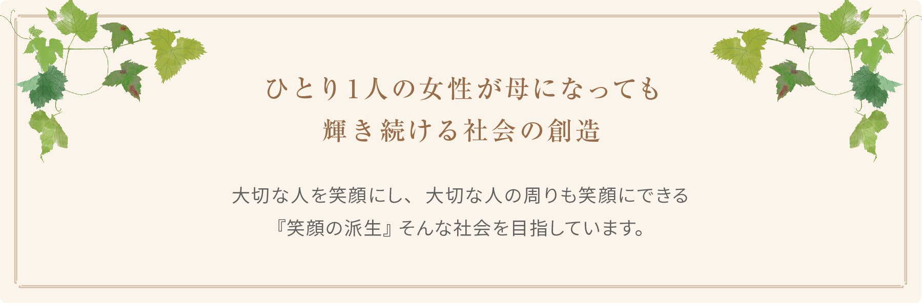 NATUREの経営理念はひとり1人の女性が母になっても輝き続ける社会の創造であり、その想いに込めた中には女性が輝くことや女性が笑顔でいることが社会をより良くすると信じているからです。