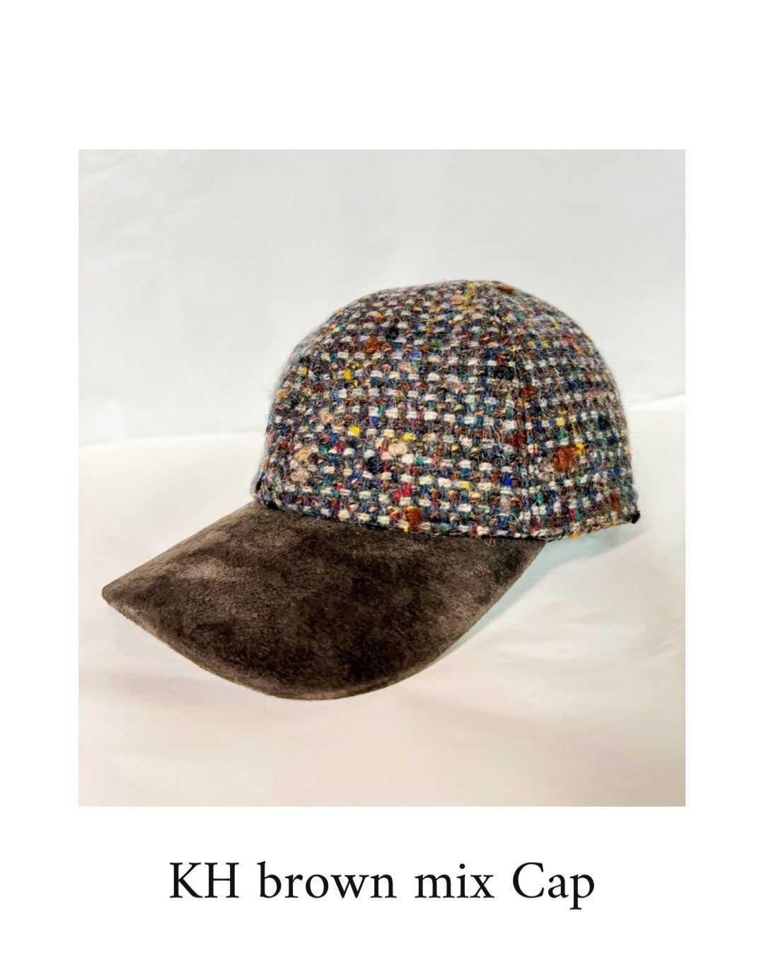 ブラウンをベースに、様々なカラーが織り込まれた上品なミックスツイード。ツバのブラウンスエードが、秋らしい深みのあるムードを演出します。ジェンダーレスなデザインなので、メンズギフトや家族・パートナーとのシェアアイテムにも。