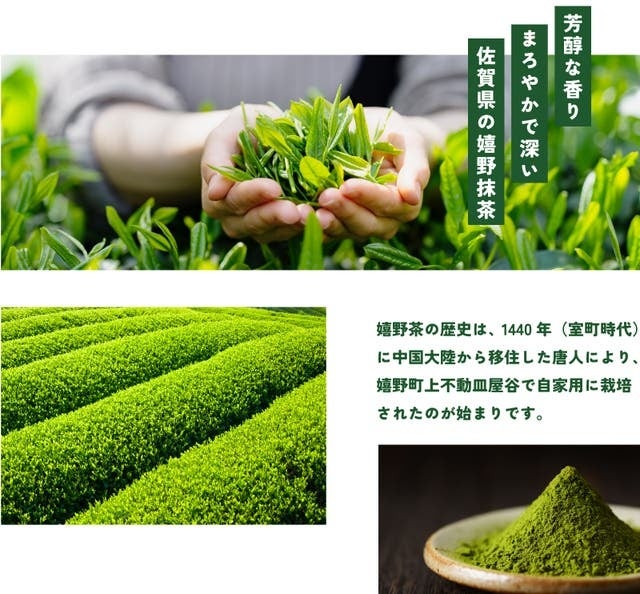 丁寧に摘み取られた佐賀県嬉野産の抹茶を使用