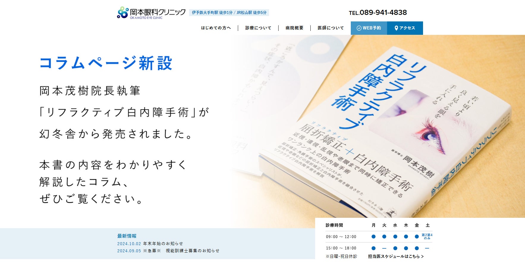 書籍出版をきっかけに、公式サイトをリニューアルいたしました。コラムページを新たに作成し、白内障についてお調べになられているより多くの方に、書籍で解説している「正しい治療」についてお伝えできればと考えています。