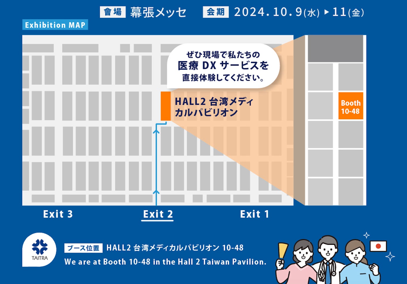 「 メディカルジャパン」は、日本最大の国際医療展示会であり、医療、介護、医薬品などの分野におけるB2Bの商談会です。世界各国のバイヤー、メーカー、サプライヤー、輸入業者、流通業者が集まるこの展示会は、海外企業にとって日本市場への進出に貴重なビジネスチャンスを提供しています。今回初めて出展するAlleyPinは、台湾貿易センター(TAITRA)が主催する台湾パビリオンに参加し、1.Talkが提供する優れた医療DXソリューションを発表いたします。