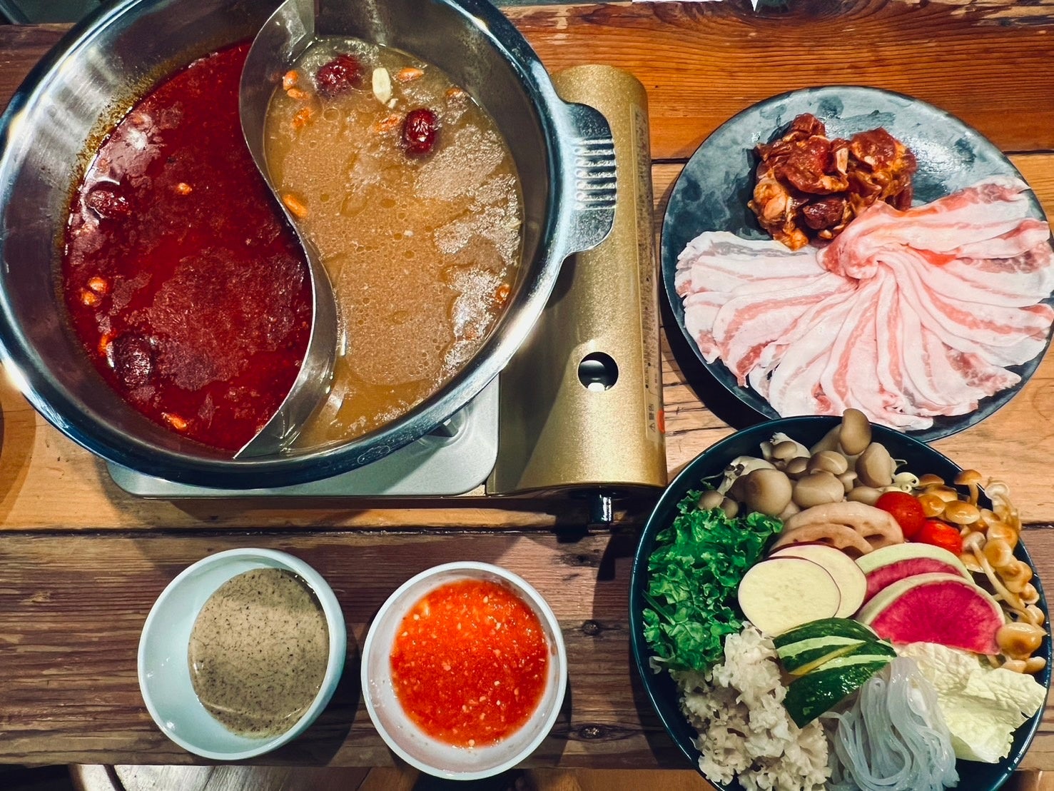 ・火鍋セット(赤豚しゃぶしゃぶ肉、麻辣牛肉、野菜盛合せ、ジャスミンライス) 一人前 3,000円