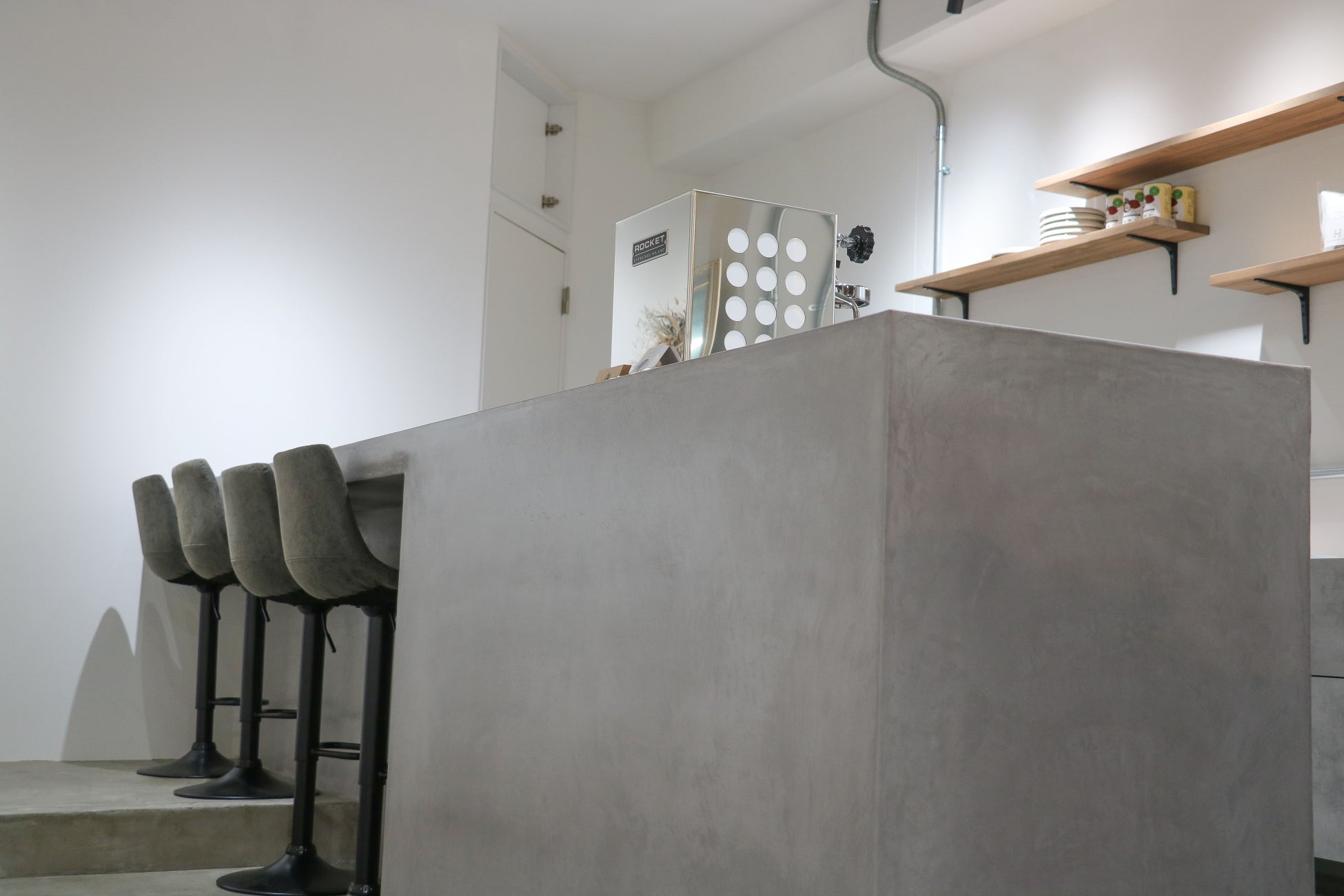 韓国カフェをイメージした無機質で非日常的な空間を提供。小さなお子様や女性に優しい、デカフェメニューやヴィーガンメニューも豊富に取り揃えています。