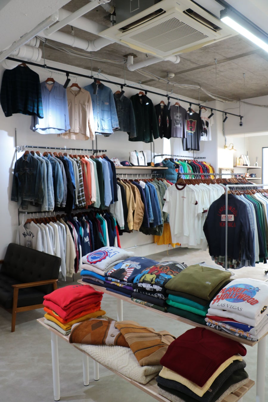 古着はアメリカ本場のヴィンテージディーラーから直接買い付けたものを販売。アメカジを中心に、ミリタリーやワークウェアなど、オーナーがこだわり抜いた商品が並びます。