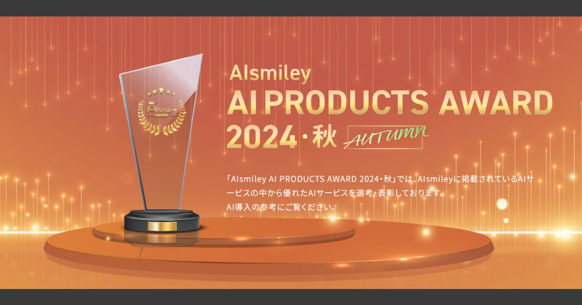 「AIsmiley AI PRODUCTS AWARD 2024 AUTUMN」の詳細は、公式サイト(https://aismiley.co.jp/aismiley-ai-products-award-2024-autumn/)でご覧いただけます。