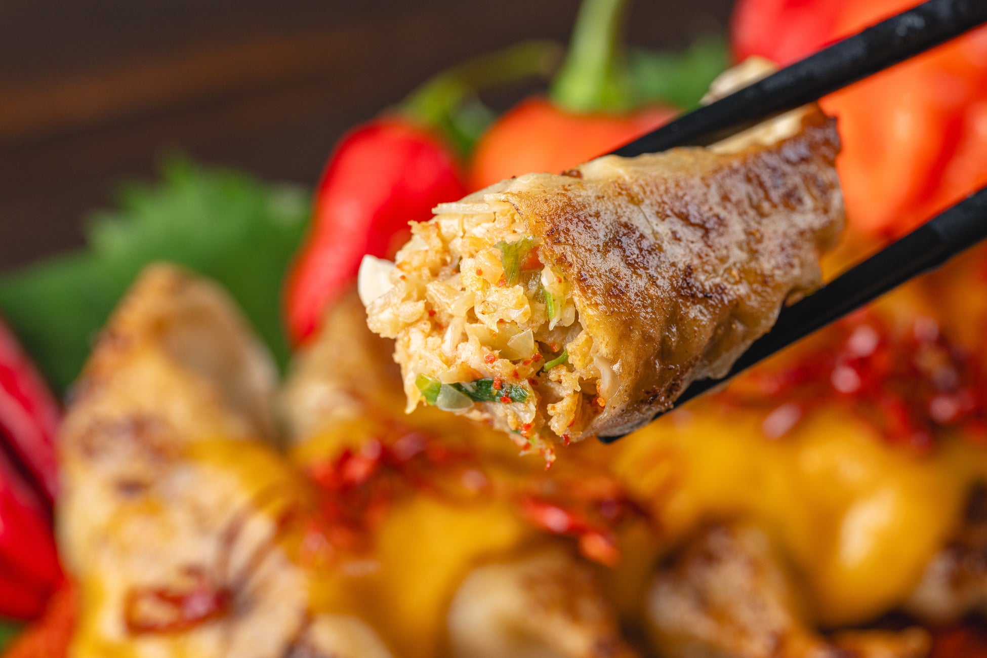 辛いだけでなく餃子の旨さにもこだわり抜いて、金星食品の看板商品「特撰生餃子」の製法をベースに、辛さと旨さのバランスをよく引き立てるために青唐辛子を豚脂で炒めた肉餡に練り込みました。これらを包む餃子の皮も金星食品の自家製麺で、茹でても焼いても美味しくお召し上がりいただけます。また、チーズをかけてお召し上がりいただくのも癒されるのでオススメです。