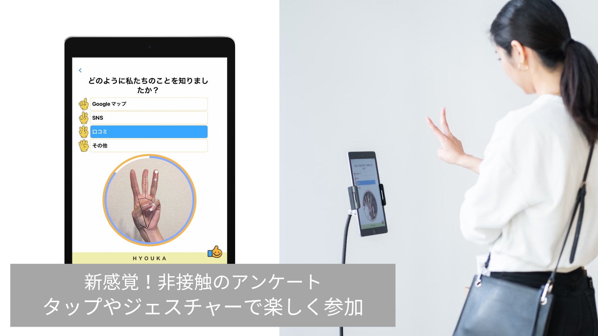 新感覚、非接触の楽しいジェスチャーアンケートとAIスマート機能で顧客調査とアンケートを効率的に収集。