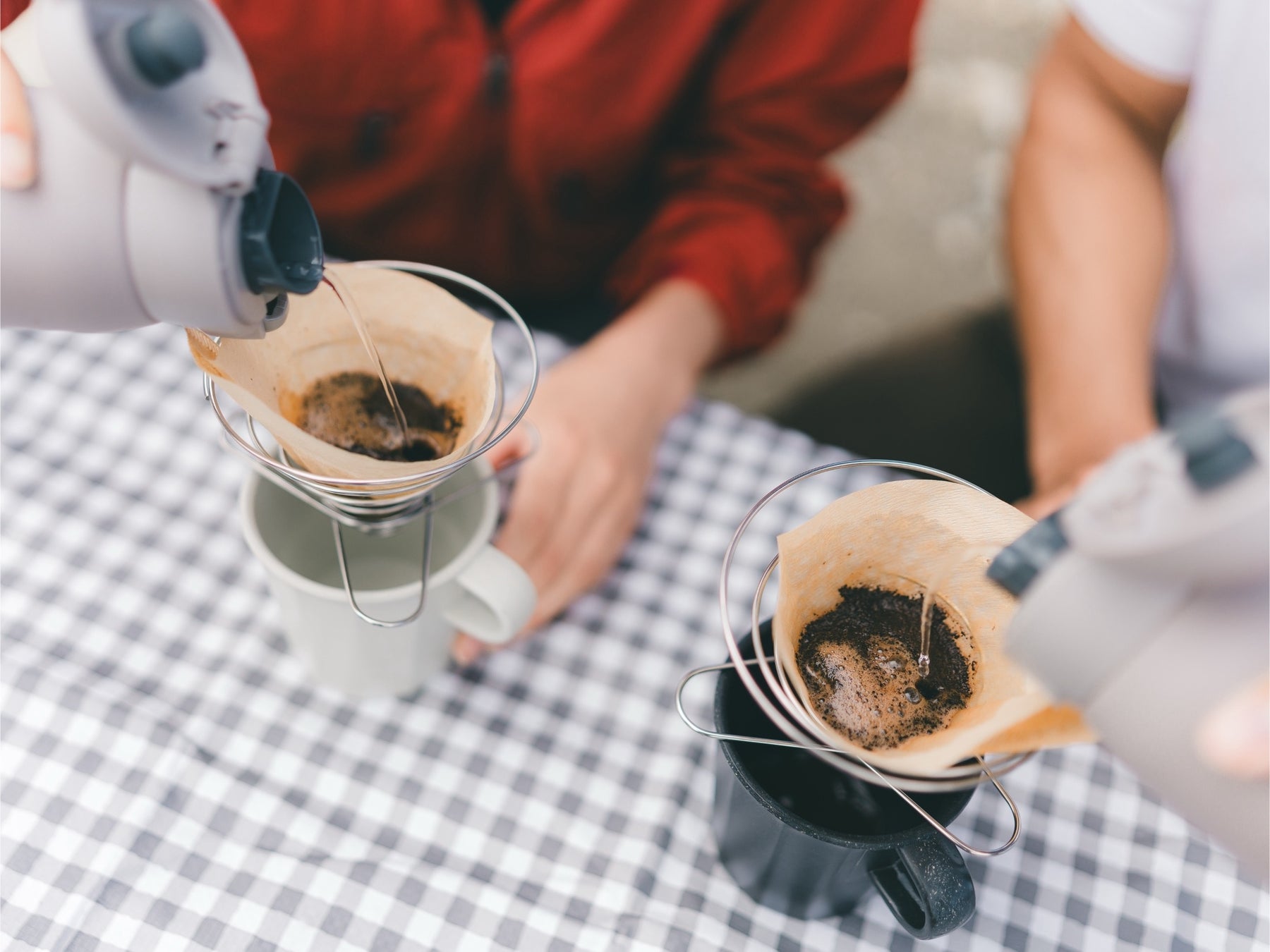 コーヒー豆は地元白馬村のカフェ、「珈琲せんじゅ」が直焙煎した、程よい酸味とすっきりとした苦味が特徴のコーヒー豆を提供します。山頂にて自身で豆を挽き、ドリップできるため、コーヒーの香りを楽しみながらくつろぎ時間をお過ごしいただけます。
