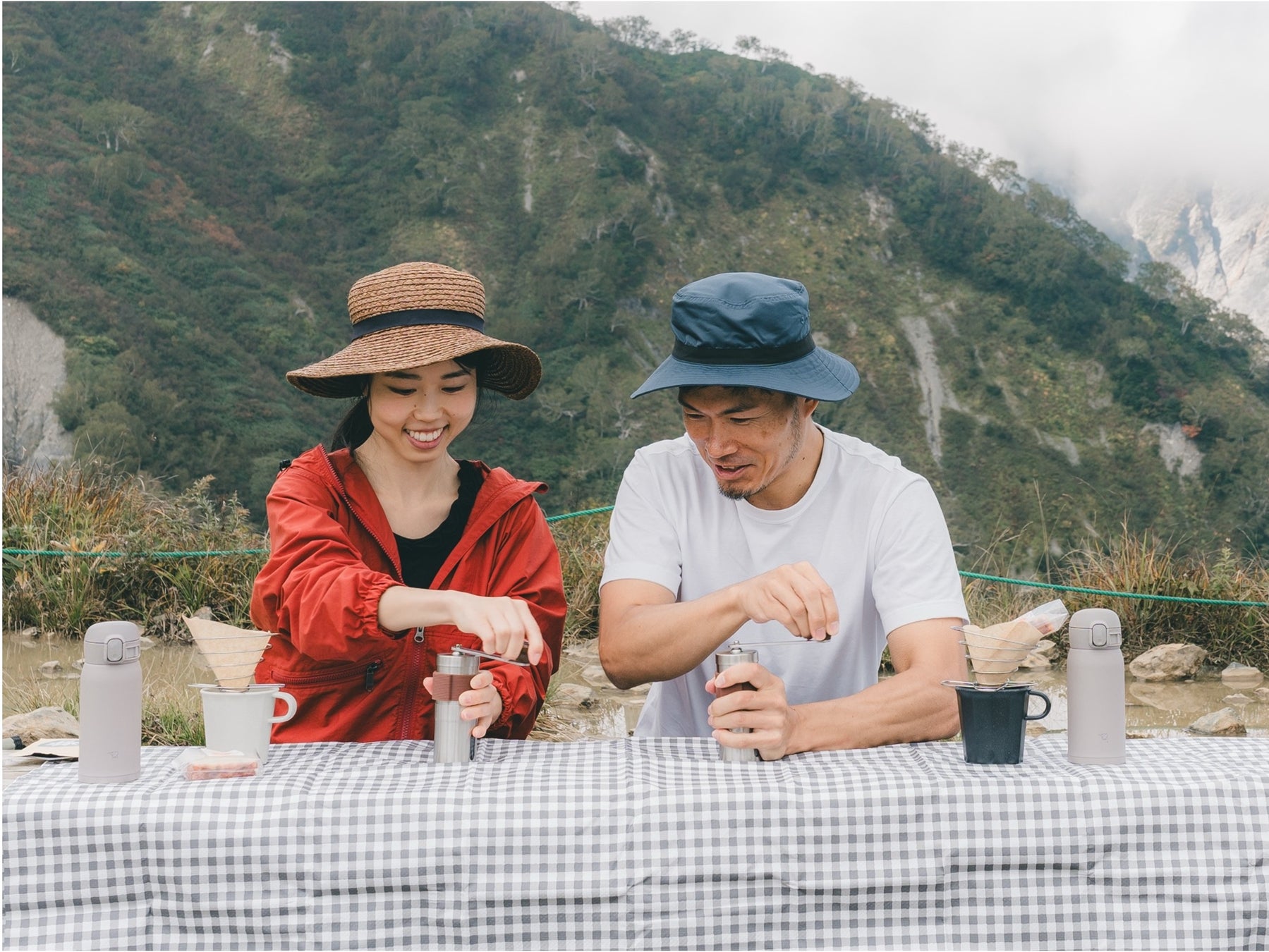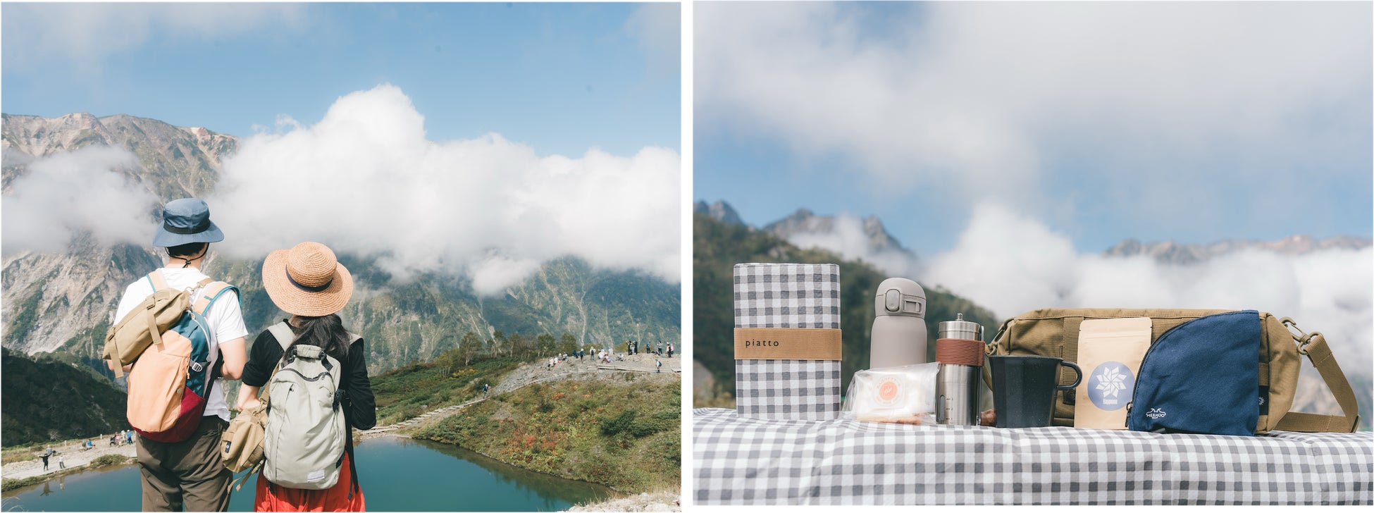 景色のうつろいが魅力の八方池では、絶好のシャッターチャンスを待ちながら、山の様々な表情を楽しむ方が多くいらっしゃいます。この贅沢な時間をより堪能していただきたいという想いから、今回のピクニックプラン販売が決定しました。コーヒー豆を手挽きできるコーヒーミルの他、コーヒードリッパー・マグカップ・レジャーシート・お湯・コーヒー豆・手作りパウンドケーキをセットにして提供。手ぶらでピクニックをお楽しみいただけます。