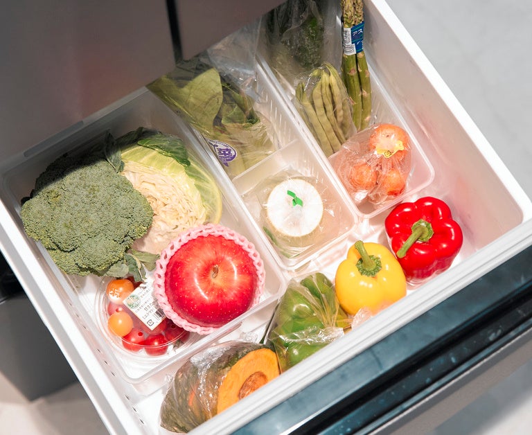 野菜は立てて収納!重ならないようにすることで、全体が把握できフードロスを防ぐことにも繋がります。